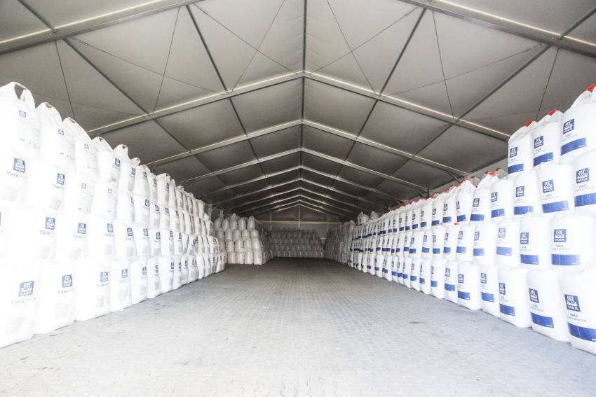 W ostatnich latach centrum logistyczne znacząco zwiększyło powierzchnię magazynową. Powstały potężne, betonowe zasobnie do towarów sypkich m.in. nawozów. Inwestycja ta wymagała szybkiego uzupełnienia o linię do sortowania i paletyzowania nawozów oraz magazyny do przechowywania przesortowanych nawozów. Istotne było zabezpieczenie przechowywanych towarów przed wilgocią ze względu na możliwość uwalnia się azotu. Firma poszukując wykonawcy hal magazynowych oczekiwała rozwiązań efektywnych kosztowo i spełniających wymogi dotyczące izolacji cieplnej, funkcjonalności, trwałości i odporności na warunki atmosferyczne. Wybór padł na termoizolowane hale namiotowe z dachem pompowanym i płytą warstwową “sandwich”.